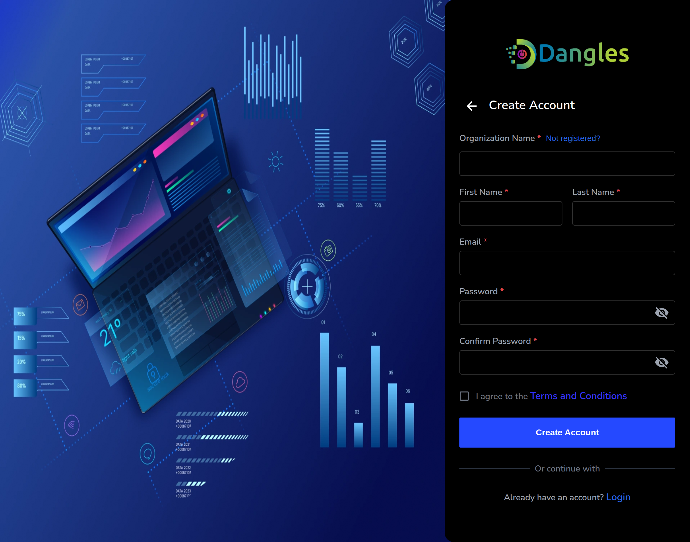 How to login and register: once the client get registered and onboarded , admin credentials will be setup and below serves as the starting step for users to register their organization with the platform.